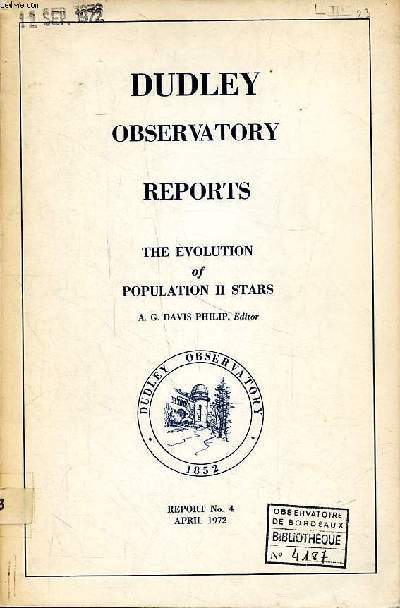 Dudley observatory. Avril 1972. In-8. Broché. Bon état, Couv. convenable, Dos satisfaisant, Intérieur frais. 216 pages augmentées de quelques figures en noir et blanc dans et hors texte.. . . . Classification Dewey : 420-Langue anglaise. Anglo-saxon
