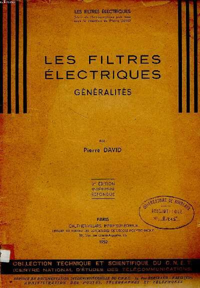 Etiquette sur coiffe en pied. Tampon bibliothèque. 3è édition entièrement refondue. Collection technique et scientifique du C.N.E.T. Classification Dewey : 537-Electricité