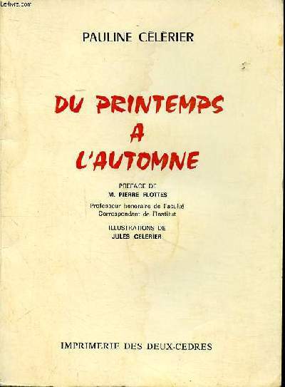 "Couverture par Jacques Robert. ""Impossible de nier que ce prontemps de l'automne de Céline D'Alibrisque a de l'écriture, du rythme et de la couleur..."" Charles Ehlinger. Classification Dewey : 840.091-XX ème siècle"