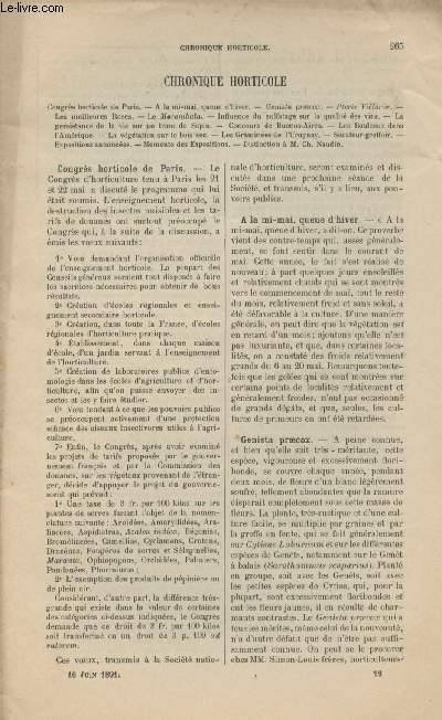 Sommaire : Congrès horticole de Paris - A la mi-mai, queue d'hiver - Les meilleures roses - Le Matambala - Influence du sulfatage sur la qualité des vins - La persistance de la vie sur un tronc de sapin - Concours de Buenos-Aires - Les bouleaux dans l'Amérique.. Classification Dewey : 635-Horticulture
