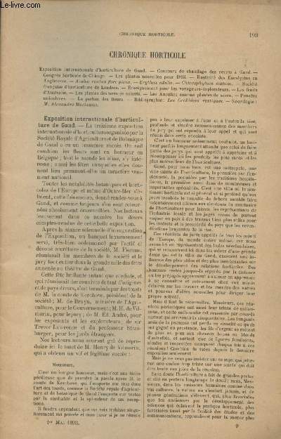 Sommaire : Expo. internationale d'horticulture de Gand - Concours de chauffage des serres à Gand - Congrès horticole de Chicago - Les plantes nouvelles pour 1893 - Rusticité des eucalyptus en Angleterre - Société française d'horticulture de Londres - Enseignement pour les voyageurs-explorateurs - Les fruits d'Australie - Les plantes des terrains salants - Les ancolies comme plantes de serre... Classification Dewey : 635-Horticulture