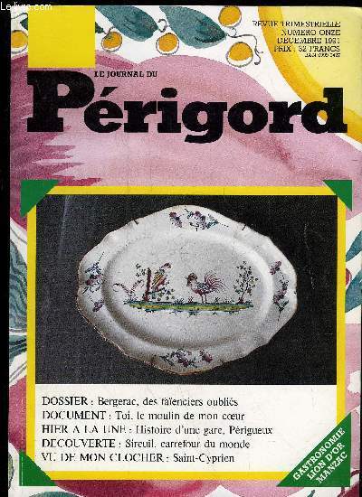 SOMMAIRE : DOSSIER : Bergerac, des faïenciers oubliés DOCUMENT : Toi, le moulin de mon cœur HIER A LA UNE : Histoire d’une gare, Périgueux DECOUVERTE : Sireuil, carrefour du monde VU DE MON CLOCHER : Saint-Cyprien Classification Dewey : 908.447-Régionalisme : Aquitaine