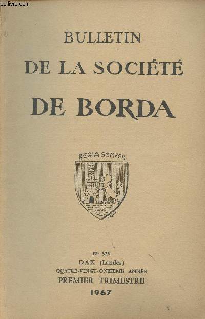 SOCIETE DE BORDA. 1967. In-8. Broché. Bon état, Couv. convenable, Dos satisfaisant, Intérieur frais. 132 pages - quelques photos en noir et blanc hors texte.. . . . Classification Dewey : 908.447-Régionalisme : Aquitaine