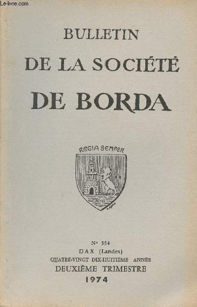 SOCIETE DE BORDA. 1974. In-8. Broché. Bon état, Couv. convenable, Dos satisfaisant, Intérieur frais. Paginé de 134 à 267 - quelques photos en noir et blanc dans et hors texte.. . . . Classification Dewey : 908.447-Régionalisme : Aquitaine