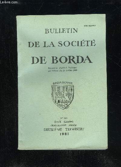 SOCIETE DE BORDA. 1981. In-8. Broché. Bon état, Couv. convenable, Dos satisfaisant, Intérieur frais. Environ 120 pages illustrées de figures dans le texte.. . . . Classification Dewey : 908.447-Régionalisme : Aquitaine