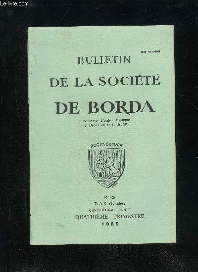 SOCIETE DE BORDA. 1985. In-8. Broché. Bon état, Couv. convenable, Dos satisfaisant, Intérieur frais. Environ 120 pages illustrées de figures dans le texte.. . . . Classification Dewey : 908.447-Régionalisme : Aquitaine