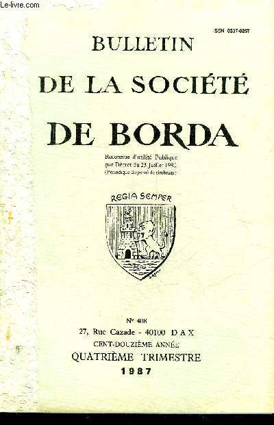 SOCIETE DE BORDA. 1987. In-8. Broché. Bon état, Couv. convenable, Dos satisfaisant, Intérieur frais. Paginé de 443 à 592.. . . . Classification Dewey : 908.447-Régionalisme : Aquitaine