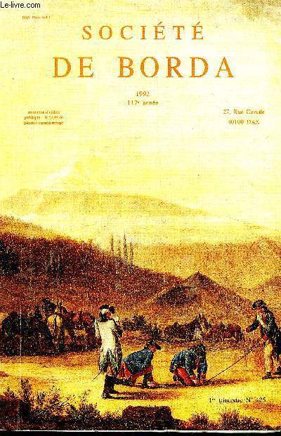 SOMMAIRE : JeanCharles de Borda aperçu à TeneriffeLa Chapellenie de l’Eglise de Messanges, par Charles BLANCCarraques en Marensin 16271628, par Pierre CASTAGNOSNotes sur l’Ingénieur DavidFrançois PANAY et sur quelques maisons de MontdeMarsan du premier Empire, par Bernadette SUAUL’Eiang de Léon et le courant d’Huchet en l’An 10, par Jean PEYRESBLANQUESEcole de Léon, par David CHABASPapiers peints du tout début du XIXe siècle à StSever, par Françoise et Jacques BLANCSUBESHeurts et Malheurs d’une famille de vieille Noblesse Gasconne : les D’Artigues d’Osseaux, par Franck LALANNELa Société Botanique de Genève en Aquitaine (819 Juillet 1991)ln Memorian : Le Botaniste Paul JOVET (18961991), par JeanJacques LAZAREVARIA, par Jean VERGÉSComptes rendus des séances de travail :Séance du 18 Décembre 1991.Séance du 15 Janvier 1992Bibliographie :André LABADIE, L’Histoire d’un pêcheur et du Lac de Léon, par Jacques MARSAN ; Inaki INCHAUSPE, Occupation du sol et peuplement entre Adour et Midou des origines au XlVe siècle, par Bernadette SUAU ; Gilles DUBUS, Céline au Pays de Born, par Charles BLANC ; Frédéric SELLIER, Le Syndicalisme agricole dans le BasAdour : des Syndicats de Métayers au Modef, par Jean VERGÉS ; LANGLE (de) et KERSTRAT (de), Les Ordres de Saint Lazare de Jérusalem et de Notre Dame du Mont Carmel auxXVIle et XVIIIe siècles ; Jean LAFOURCADE, Les perspectives économiques des taxes sur le chiffre d’affaires, par JeanClaude MERLET. Classification Dewey : 908.447-Régionalisme : Aquitaine