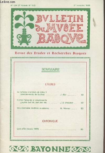 MUSEE BASQUE. 1989. In-4. Broché. Bon état, Couv. convenable, Dos satisfaisant, Intérieur frais. Environ 50 pages illustrées de figures dans le texte.. . . . Classification Dewey : 908.447-Régionalisme : Aquitaine