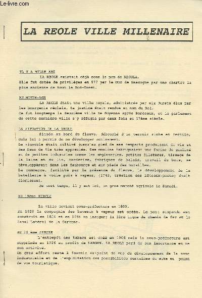 Office du Tourisme et Syndicat d'Initiative du Réolais. Non daté. In-8. Broché. Bon état, Couv. convenable, Dos satisfaisant, Intérieur frais. 9 pages + 8 pages + un plan dépliant en couleurs, recto-verso.. . . . Classification Dewey : 908.447-Régionalisme : Aquitaine
