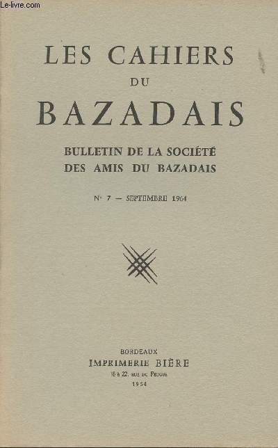 SOCIETE DES AMIS DU BAZADAIS. 1964. In-8. Broché. Bon état, Couv. convenable, Dos satisfaisant, Intérieur frais. 32 pages - quelques photos et cartes en noir et blanc dans le texte.. . . . Classification Dewey : 908.447-Régionalisme : Aquitaine