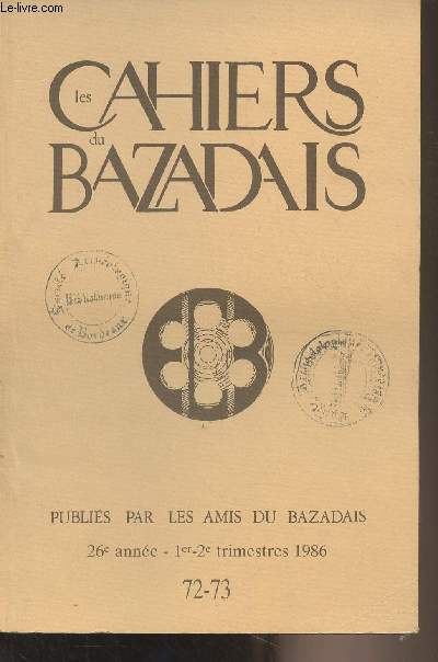 SOCIETE DES AMIS DU BAZADAIS. 1986. In-8. Broché. Bon état, Couv. convenable, Dos satisfaisant, Intérieur frais. 93 pages - nombreuses figures en noir et blanc dans et hors texte. Tampon sur le 1er plat.. . . . Classification Dewey : 908.447-Régionalisme : Aquitaine