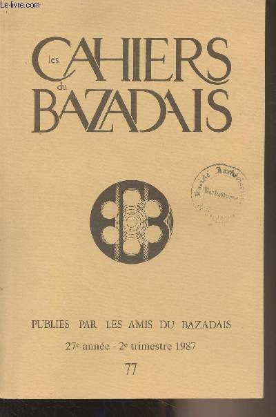 SOCIETE DES AMIS DU BAZADAIS. 1987. In-8. Broché. Bon état, Couv. convenable, Dos satisfaisant, Intérieur frais. 45 pages. Tampon sur les plats.. . . . Classification Dewey : 908.447-Régionalisme : Aquitaine