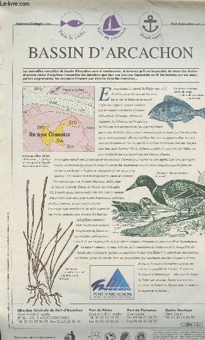 Port D'Arcachon. 2001. In-Plano. Broché. Bon état, Couv. convenable, Dos satisfaisant, Intérieur frais. Carte géologique dépliante en couleurs du Bassin d'Arcachon accompagnée d'explications et d'illustrations en couleurs.. . . . Classification Dewey : 908.447-Régionalisme : Aquitaine