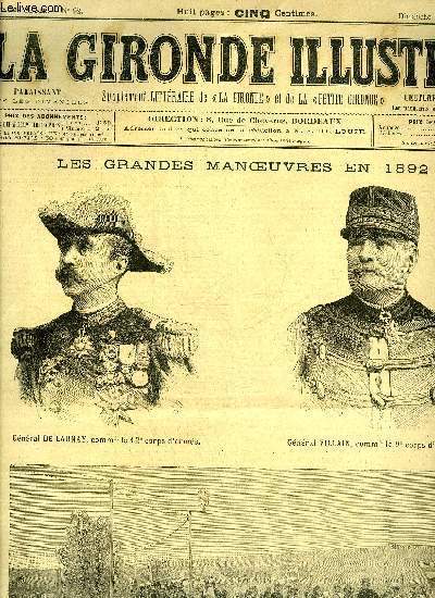 sommaire / Courrier de fa semaine.Pierre Grison.Filles du peupleJean Richepin.La mère Faucille. .C. GrandmouginL’attelage de la marquise [suite).Léon de TinseauLe gosse.Georges de Lys.Calibre 7. .E.-A. Spoll.Les débuts de Brigodin.Albert Cim.Aux enfants du pays..André LemoyneRécréations et jeux d’esprit.De Vinet.Recettes et inventions. — Çà et là.— Menus propos.NOS GRAVURES : Les grandes manœuvres de 1892 : Portraits du général de Launay, commandant du 12e corps d’armée; du général Vi/lain, commandant du 9e corps d’armée; les arbitres aux grandes manœuvres. — M. Mounet-Sully dans le rôle d’« Œdipe », Classification Dewey : 908.447-Régionalisme : Aquitaine