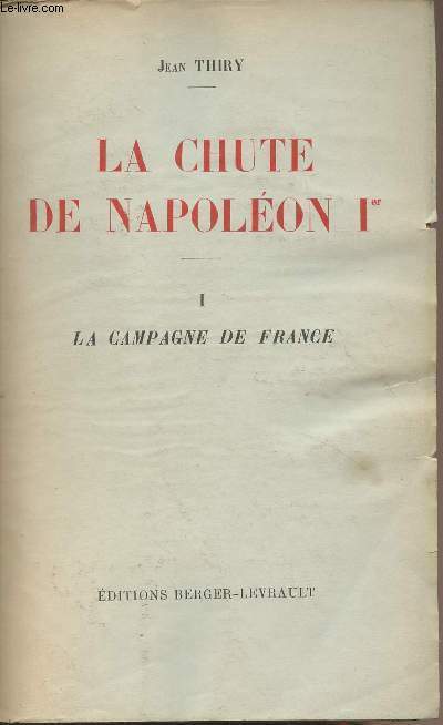 BERGER- LEVRAULT. 1938. In-8. Relié. Bon état, Couv. convenable, Dos satisfaisant, Intérieur frais. VII + 398 pages - 1 tampon sur la page de titre, la page 1 et 185 - 1 carte depliante en noir et blanc hors texte en fin d'ouvrage - 1 annotation au crayon de bleu sur la page de garde.. . . . Classification Dewey : 944.051-Histoire de Napoléon 1er