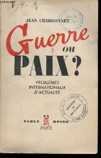 La Table Ronde. 1945. In-12. Broché. Etat d'usage, Couv. défraîchie, Mors fendus, Intérieur frais. Paris, La Table Ronde, 1945, in 12, broché, tampons de bibliothèque, 339 pp.. . . . Classification Dewey : 940.53-Seconde Guerre mondiale 1939-1945