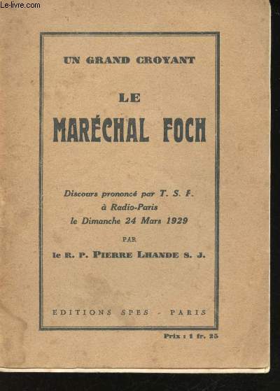 Spès. 1929. in-8. Broché. Etat d'usage, Couv. défraîchie, Dos frotté, Quelques rousseurs. Paris, Spès, 1929, plaquette in 8, broché, 14 pp. 1er plat désolidarisé. Couverture avec légères rousseurs.. . . . Classification Dewey : 940.3-Première Guerre mondiale 1914-1918