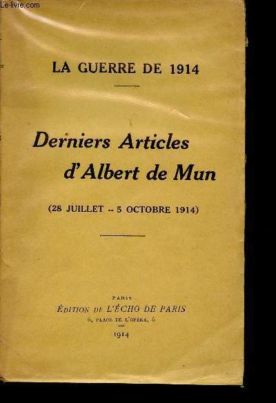 EDITIONS DE L'ECHO DE PARIS. 1914. In-12. Broché. Etat d'usage, 1er plat abîmé, Manque en coiffe de pied, Intérieur frais. 274 pages. Page de titre légèrement tâchée.. . . . Classification Dewey : 940.3-Première Guerre mondiale 1914-1918
