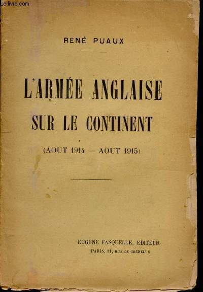Fasquelle. Non daté. in-12. Broché. Etat d'usage, Couv. défraîchie, Dos très frotté, Intérieur frais. Paris, Fasquelle, (1917), in 12, broché, 108 pp.. . . . Classification Dewey : 940.3-Première Guerre mondiale 1914-1918