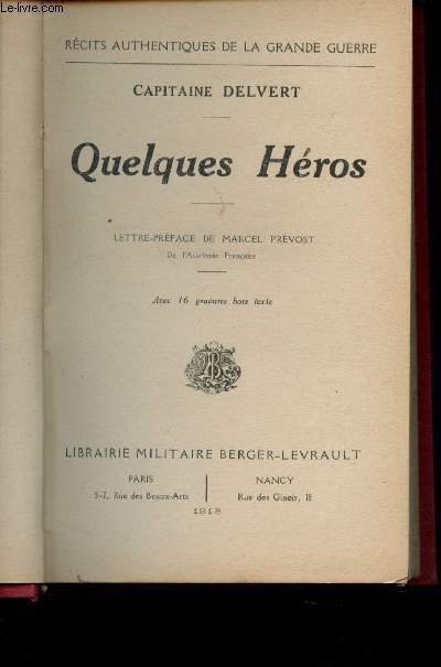 Récits authentiques de la Grande Guerre. Lettre-Préface de Marcel Prévost. Classification Dewey : 940.3-Première Guerre mondiale 1914-1918
