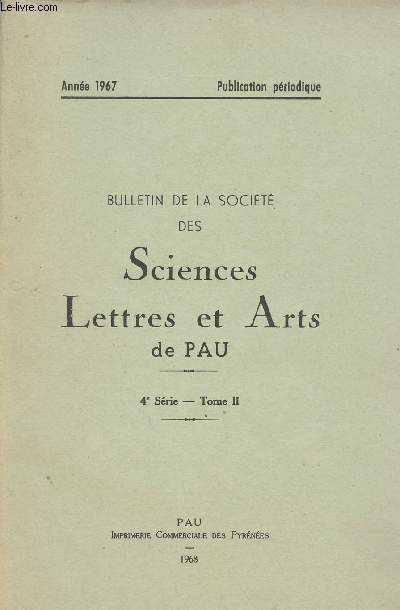 Sommaire : Calendrier des activités de la société en 1968- La flore des Pyrénées - L'oppidum d'Asson - Le plateau de Ger, voie du sel - A la recherche du vieux chemin de Sarrance - Figures de routiers pyrénéens de la première moitié de la guerre de Cent ans - Agnès de Navarre et Gaston Fébus - Un 5e manuscrit des Fors de Béarn... Classification Dewey : 908.447-Régionalisme : Aquitaine