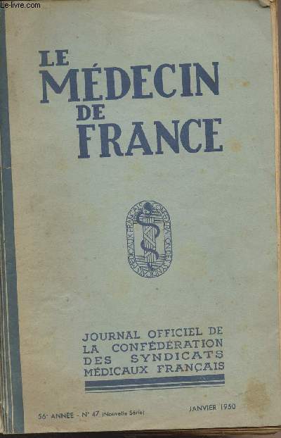 Le médecin de France. 1950. In-8. Broché. Etat d'usage, Couv. légèrement passée, Coiffe en pied abîmée, Papier jauni. Paginé de 3036 à 3118 - quelques encars publicitaires en couleurs et en noir et blanc dans et hors texte.. . . . Classification Dewey : 70.49-Presse illustrée, magazines, revues