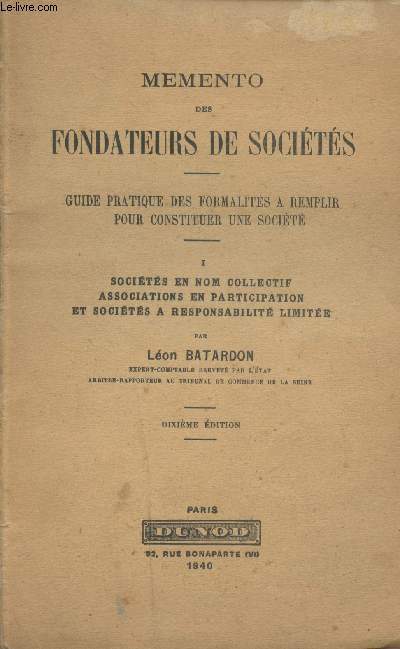 Dunod. 1940. In-8. Broché. Etat d'usage, Couv. légèrement passée, Dos satisfaisant, Intérieur acceptable. 59 pages.. . . . Classification Dewey : 658-Gestion des entreprises privées et publiques
