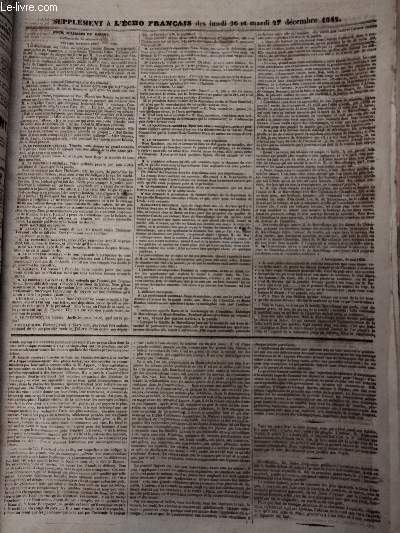 Imp. de Lange Lévy et Cie. 1842. In-4. En feuillets. Bon état, Couv. convenable, Dos satisfaisant, Intérieur frais. 2 pages en feuillets. Texte sur trois colonnes. Page 3/4 manquante. Incomplet.. . . . Classification Dewey : 70.1-Journaux