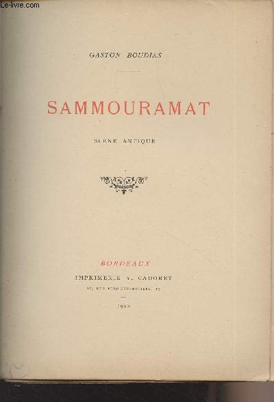 Imp. Y. Cadoret. 1900. In-8. Broché. A relier, Livré sans Couverture, Dos satisfaisant, Papier jauni. 39 pages. Livre sans plats ni dos.. . . . Classification Dewey : 840.091-XX ème siècle