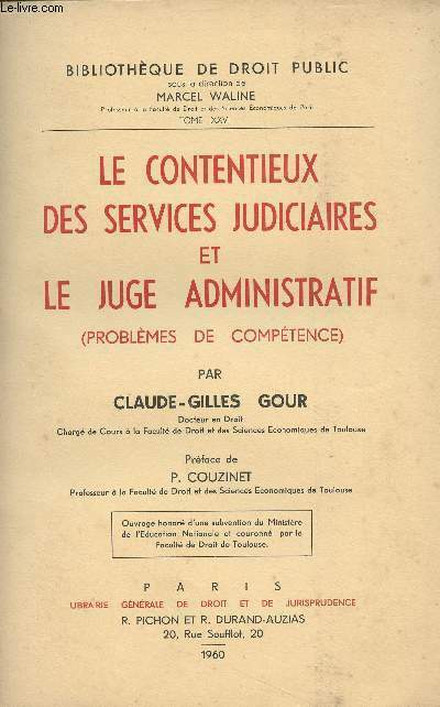 L.G.D.J.. 1960. In-8. Broché. Etat d'usage, Couv. légèrement passée, Dos satisfaisant, Non coupé. VII + 451 pages.. . . . Classification Dewey : 340-Droit