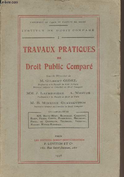 Sous la direction de M. Gilbert Gidel, MM. J. Laferrière, A. Mestre, M. B. Mirkine Guetzevitch. Classification Dewey : 342-Droit administratif, constitutionnel, public