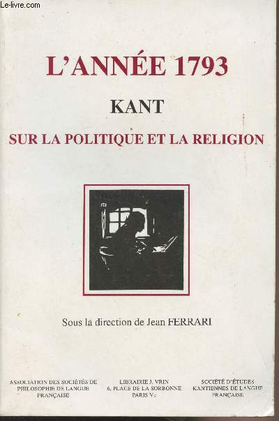 Librairie philosophique J.Vrin. 1995. In-8. Broché. Etat d'usage, Couv. légèrement pliée, Dos satisfaisant, Intérieur frais. 269 pages.. . . . Classification Dewey : 190-Philosophie occidentale moderne