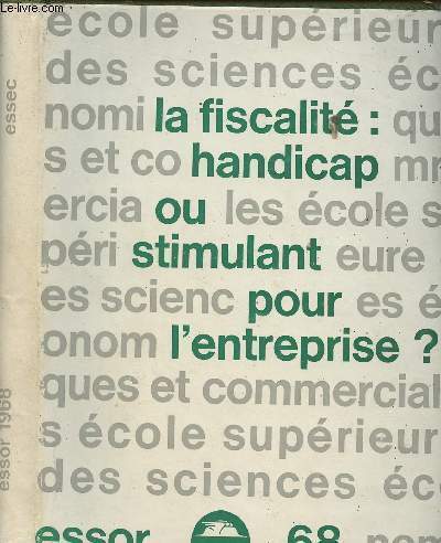 ESSEC. 1968. In-4. Relié. Bon état, Couv. convenable, Dos satisfaisant, Intérieur frais. 260 pages - nombreuses photos, illustrations et publicités en noir et blanc dans et hors texte. Texte sur deux colonnes. Jaquette légèrement passée.. Avec Jaquette. . . Classification Dewey : 352.4-Fiscalité