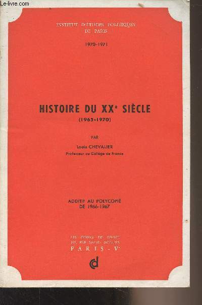 Les cours de Droit. 1971. In-8. Broché. Bon état, Couv. convenable, Dos satisfaisant, Intérieur frais. 74 pages. Texte dactylographié.. . . . Classification Dewey : 940-Histoire générale de l'Europe