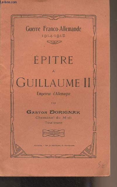 Imp. du Sud-Ouest. Non daté. In-8. Broché. Etat d'usage, Couv. convenable, Agrafes rouillées, Intérieur acceptable. 7 pages agrafées. Non daté.. . . . Classification Dewey : 940.3-Première Guerre mondiale 1914-1918