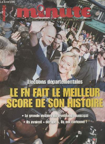 "Sommaire : Elections départementales, le FN fait le meilleur score de son histoire - La grande victoire du frontisme municipal - Ils avaient ""dérapé"", ils ont cartonné - La grande victoire du frontisme municipal - Le latin, c'est notre langue d'origine ! - Dealers contre BTP, peur sur les chantiers - La chute du tuteur des petits princes britanniques - L'incroyable procès à Henri Dutilleux.. Classification Dewey : 70.49-Presse illustrée, magazines, revues"