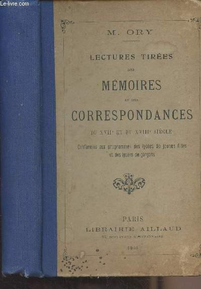 Librairie Aillaud. 1908. In-12. Relié. Etat d'usage, Coins frottés, Dos satisfaisant, Papier jauni. 455 pages. Plats légèrement tachés.. . . . Classification Dewey : 846-Lettres, correspondance littéraire