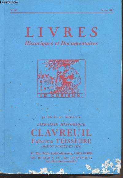 LIBRAIRIE HISTORIQUE CLAVREUIL, FABRICE TEISSEDRE. 2007. In-12. Broché. Bon état, Couv. convenable, Dos satisfaisant, Intérieur frais. 411 pages. Premier plat illustré en rouge sur fond bleu.. . . . Classification Dewey : 56-Catalogue