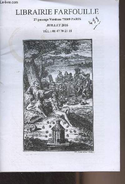 Librairie Farfouille. 2016. In-8. Broché. Etat d'usage, Couv. légèrement passée, Dos satisfaisant, Intérieur frais. 30 pages environ. Numéro écrit à l'encre et tache sur le 1er plat.. . . . Classification Dewey : 56-Catalogue