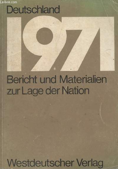 Willy Brandt : Bericht zur Lage der Nation - Egon Franke : Vorwort - Materialien zum Bericht - Wissenschaftliche Kommission - Peter Christian Ludz : Gesamtleitung - Carl-Ludwig Furck ; Walter Hornstein ; Rolf Krengel , Heinz Markmann ; Dieter Mertens ; Peter Mitzscherling - Herausgegeben von Bundesministerium für innerdeutsche Beziehungen. Classification Dewey : 430-Langues germaniques. Allemand