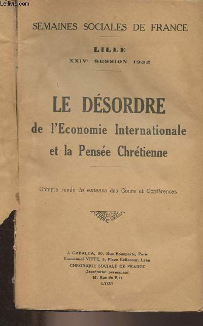 P., Gabalda, et Lyon, Vitte, et Chronique Sociale de France, 1932, fort in 8° broché, 606pp. ; illustrations ; rousseurs ; couverture défraichie avec infimes manques.