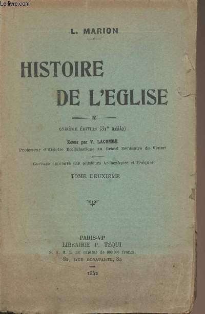 Revue par V. Lacombe. 11e édition. Classification Dewey : 270-Histoire et géographie de l'Eglise