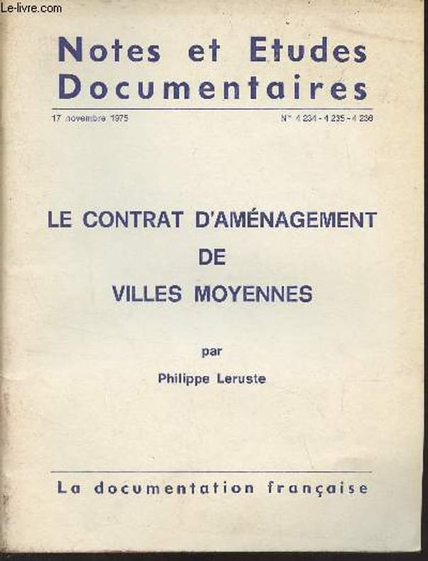 Sommaire : Le contrat d'aménagement de villes moyennes par Philippe Leruste - La problématique de la politique de villes moyennes - L'esprit de la politique de villes moyennes - Le contenu du contrat - Les relations entre l'état, ses administrations et la collectivité locale dans la procédure de villes moyennes - Les rapports entre l'état et la ville moyenne - Les rapports entre les administrations - L'apport financier du contrat - La nature juridique du contrat d'aménagement - Conclusion : quel avenir possible pour la politique de villes moyennes.. Classification Dewey : 711-Urbanisme. Aménagement du territoire