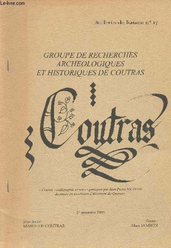 "Sommaire : Lettre du président - Nécrologie - Inauguration du Centre Culturel : allocution de maître Maurice Druon - Gavaches et gavacheries - Le Gavache - Geoffroy de Vivans - ""Je le pensai, Dieu le guérit"" -Malagar, 18.10.1992 (François Mauriac) - Causerie du 20 mai 1995 : Coutras, évocation de la vie rurale dans l'antiquité - Les anciens gués de la Dronne - Poème, 20 octobre 1587 : Coutras -.. Classification Dewey : 908.447-Régionalisme : Aquitaine"