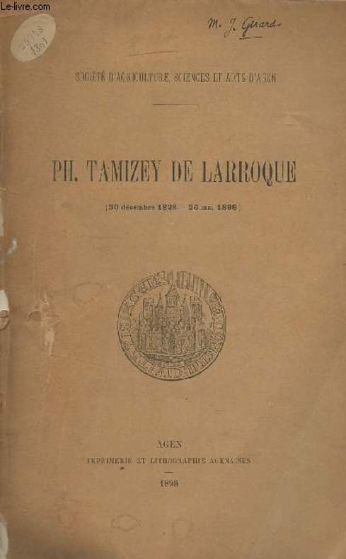 Imp. et Lithographie Agenaises. 1898. In-8. Broché. Etat d'usage, Couv. convenable, Mors fendus, Papier jauni. 28 pages. Ex libris à l'encre et tampon en page de faux titre. Nom écrit à l'encre sur le 1er plat. 1er plat plié, déchiré. Déchirures sur le dos.. . . . Classification Dewey : 920-Biographie générale et généalogie