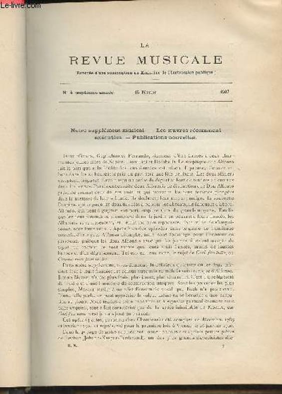 Au bureau de la revue. 1907. In-4. En feuillets. Etat d'usage, Couv. convenable, Dos satisfaisant, Intérieur acceptable. Paginé de 73 à 104 - quelques partitions de musique dans le texte.. . . . Classification Dewey : 70.49-Presse illustrée, magazines, revues