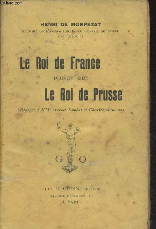 Attaque contre les positions républicaines socialistes de Marcel Sembat et celles des royalistes de Maurras sur la politique de la France surtout face à l'Allemagne.Henri de Monpézat était alors délégué de l'Annam et Tonkin. (GrD)