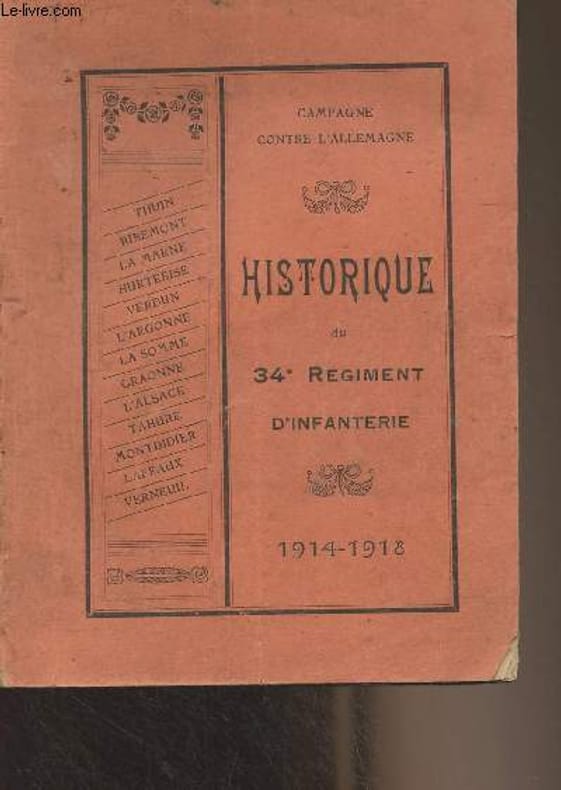 Imp. Nouvelle. Non daté. In-8. Broché. Etat d'usage, Couv. légèrement passée, Dos abîmé, Papier jauni. 118 pages. Dernière page détachée. Dos déchiré. Annotation à l'encre et tampon sur le 2e plat.. . . . Classification Dewey : 940.3-Première Guerre mondiale 1914-1918