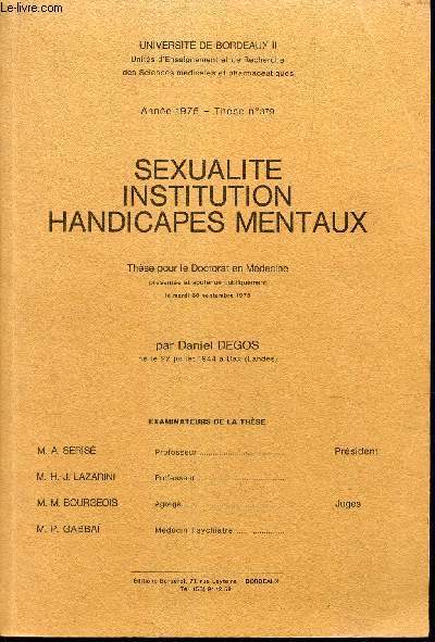 Université de Bordeaux II. non date. In-8. Broché. Bon état, Couv. convenable, Dos satisfaisant, Intérieur frais. 128 pages.. . . . Classification Dewey : 610-Sciences médicales. Médecine
